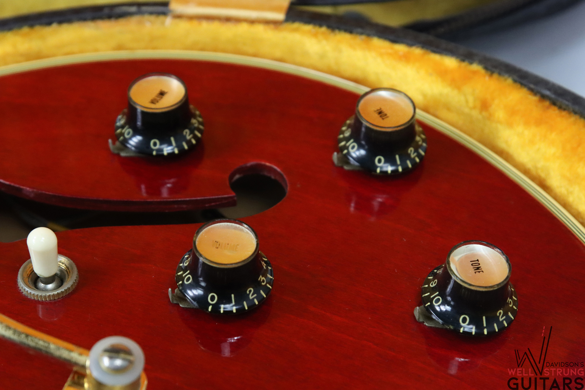 - Hardware: Original, Great Condition, patina and wear to gold plating on hardware, particularly on pickup covers