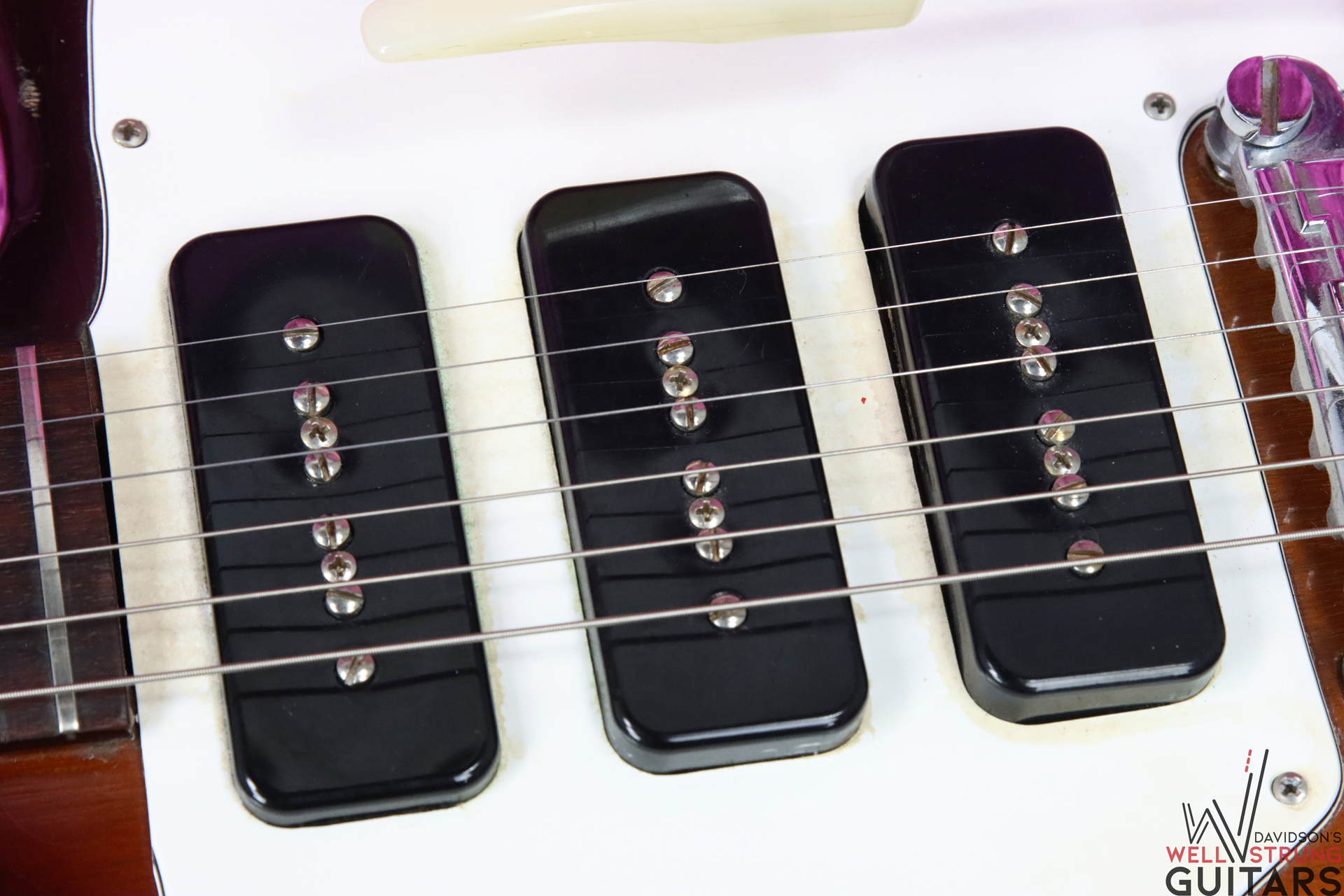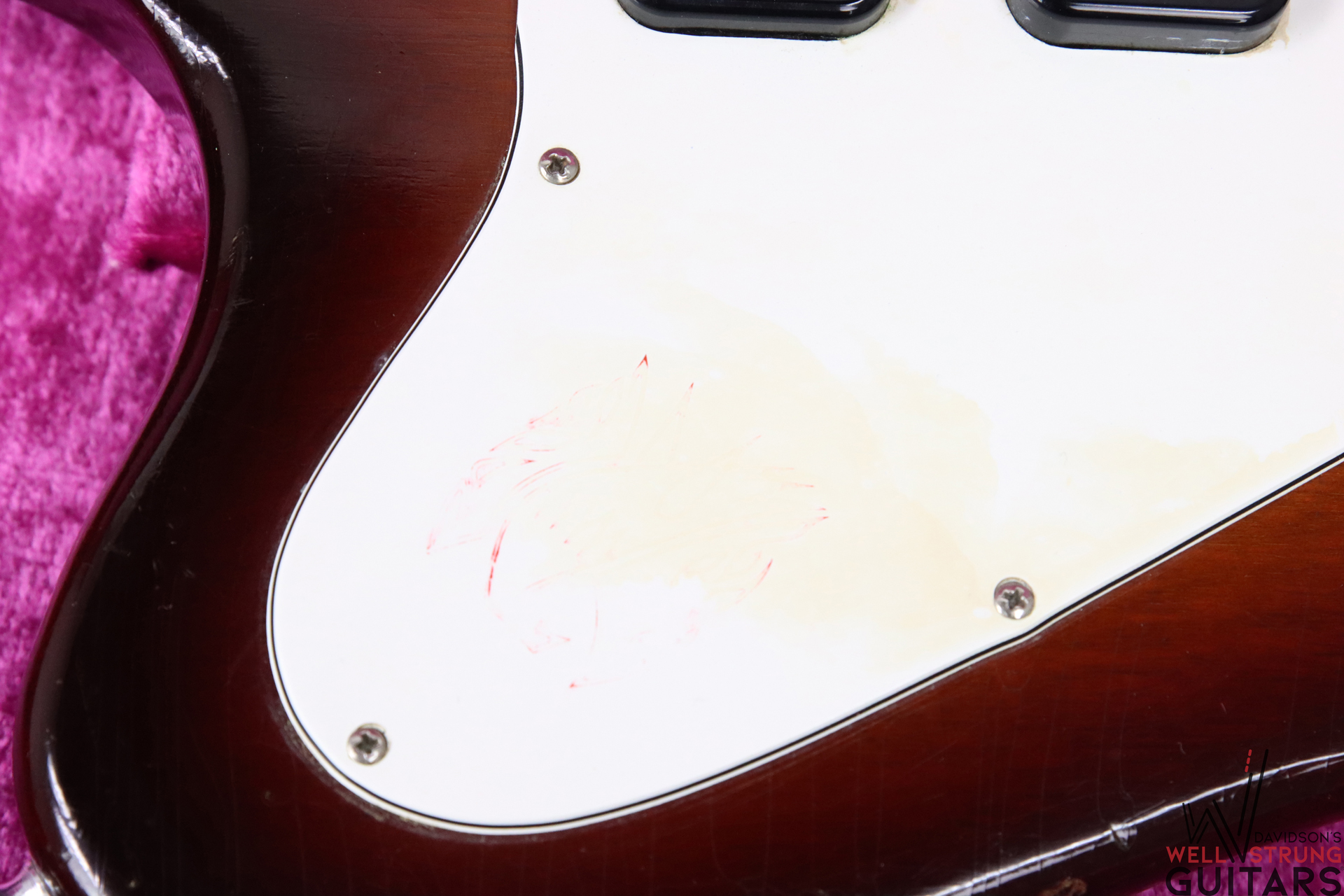 - Hardware: Original, Fair Condition, patina and playwear throughout, previously mentioned staining to pickguard, logo faded
