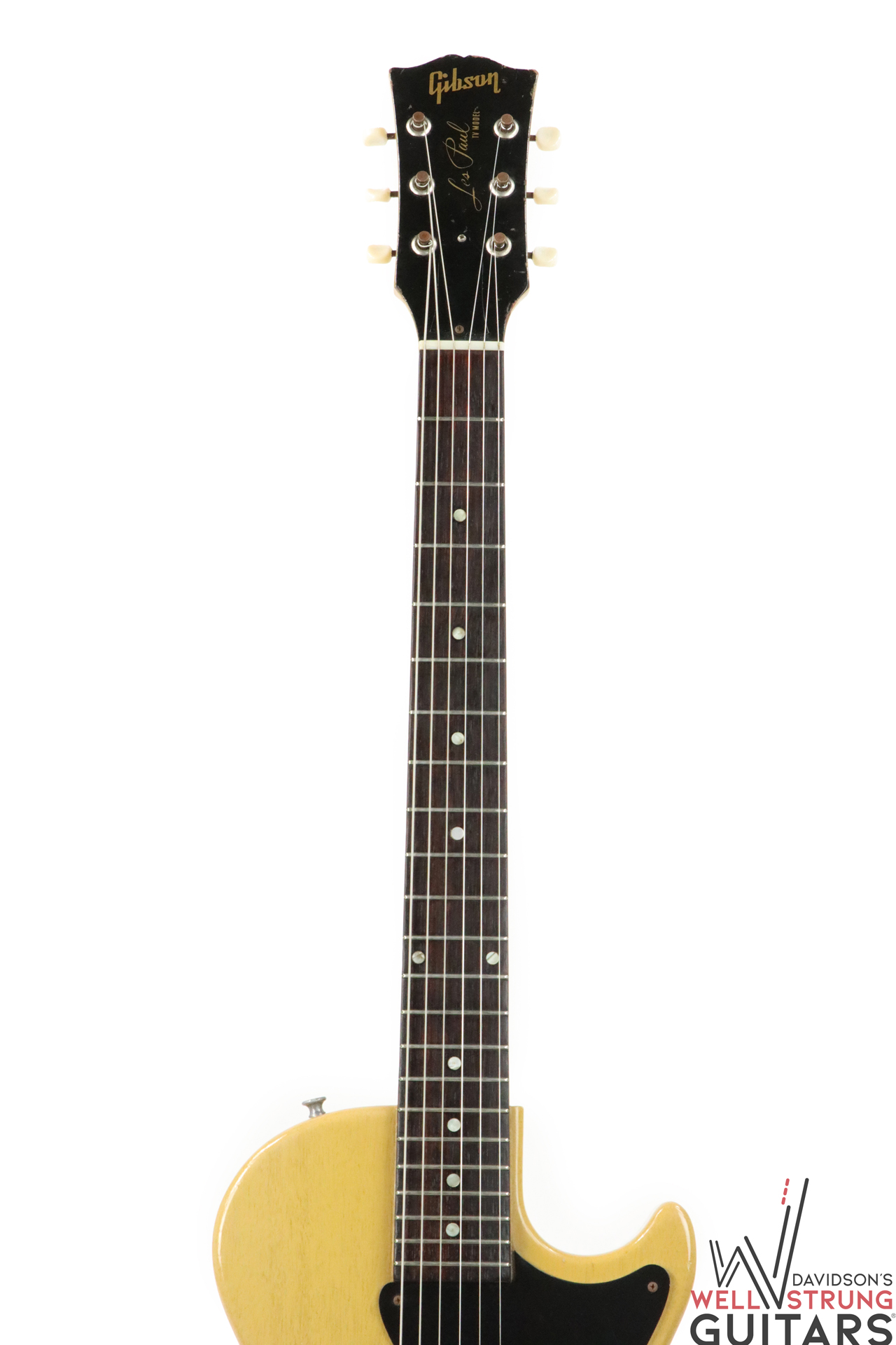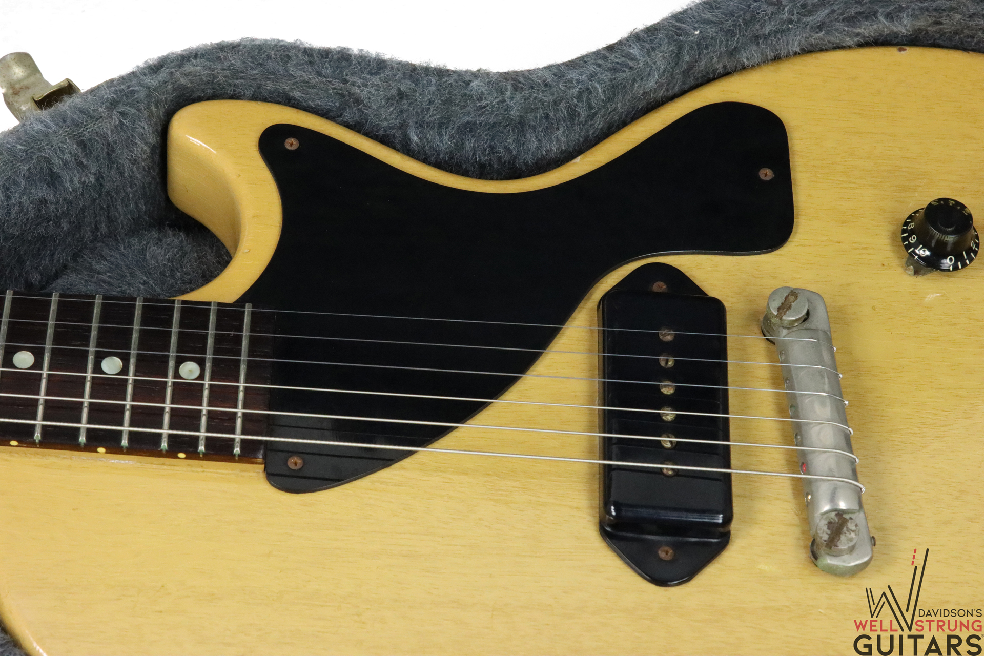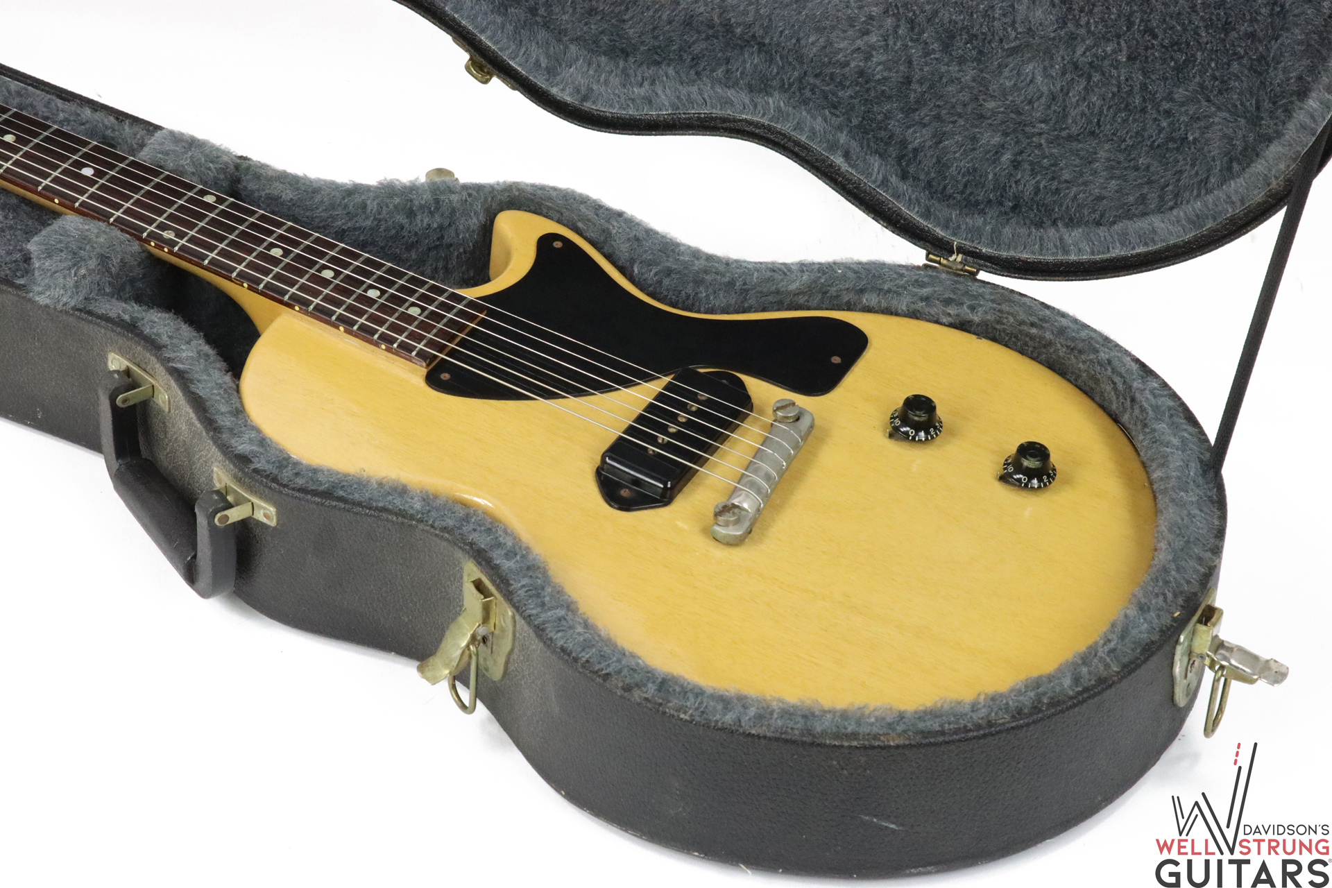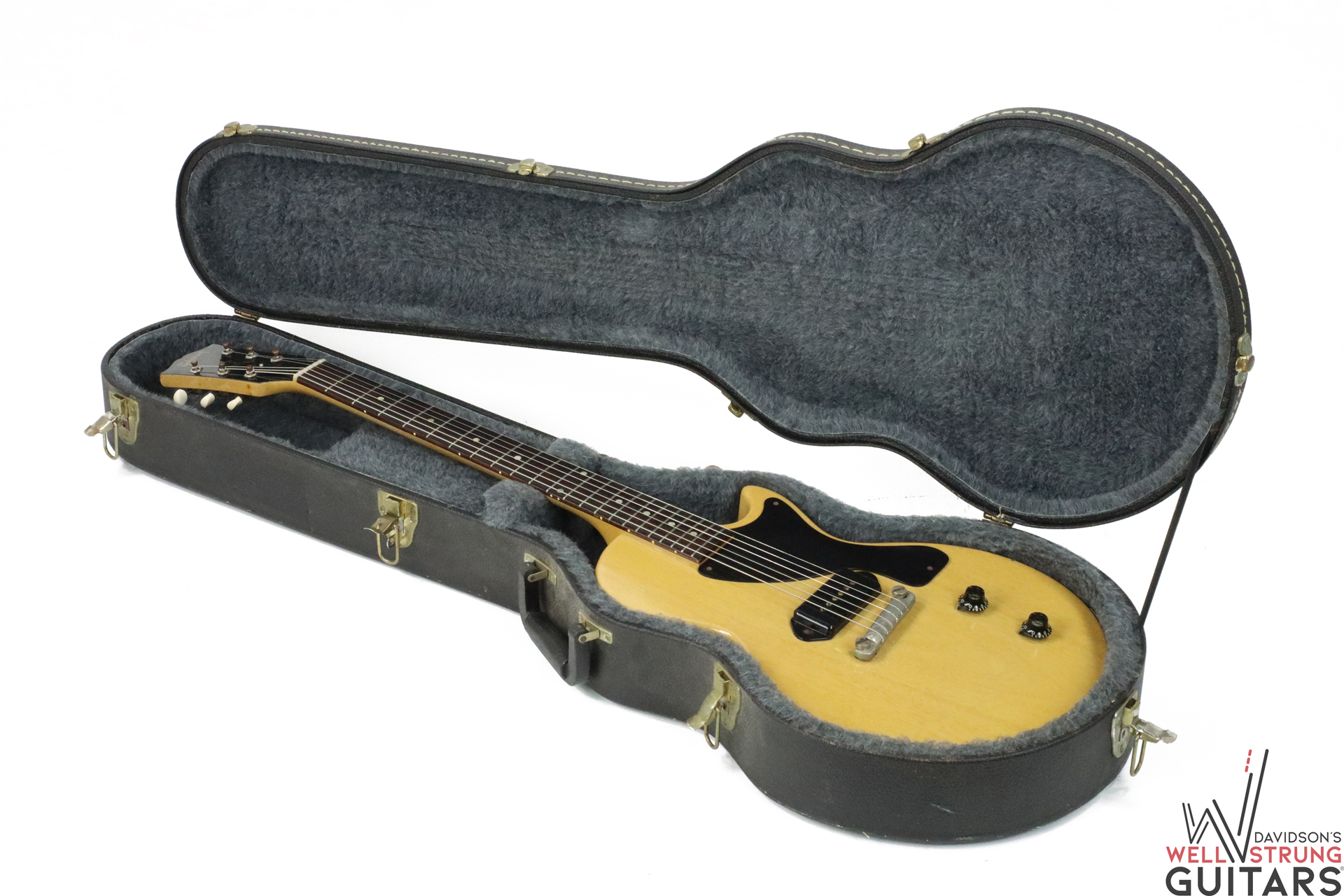 A single pickup that does it all – that’s exactly what you’ll get with this beautiful single-cutaway 1957 Gibson Les Paul TV Junior! This Jr. is lightweight and extremely resonant, making it a go-to for us here in the showroom. This guitar has new tuning buttons because its previous ones crumbled, as is very common with guitars from this time period. With a comfortable neck and searing pickup, this guitar is all you need for any collector or player!